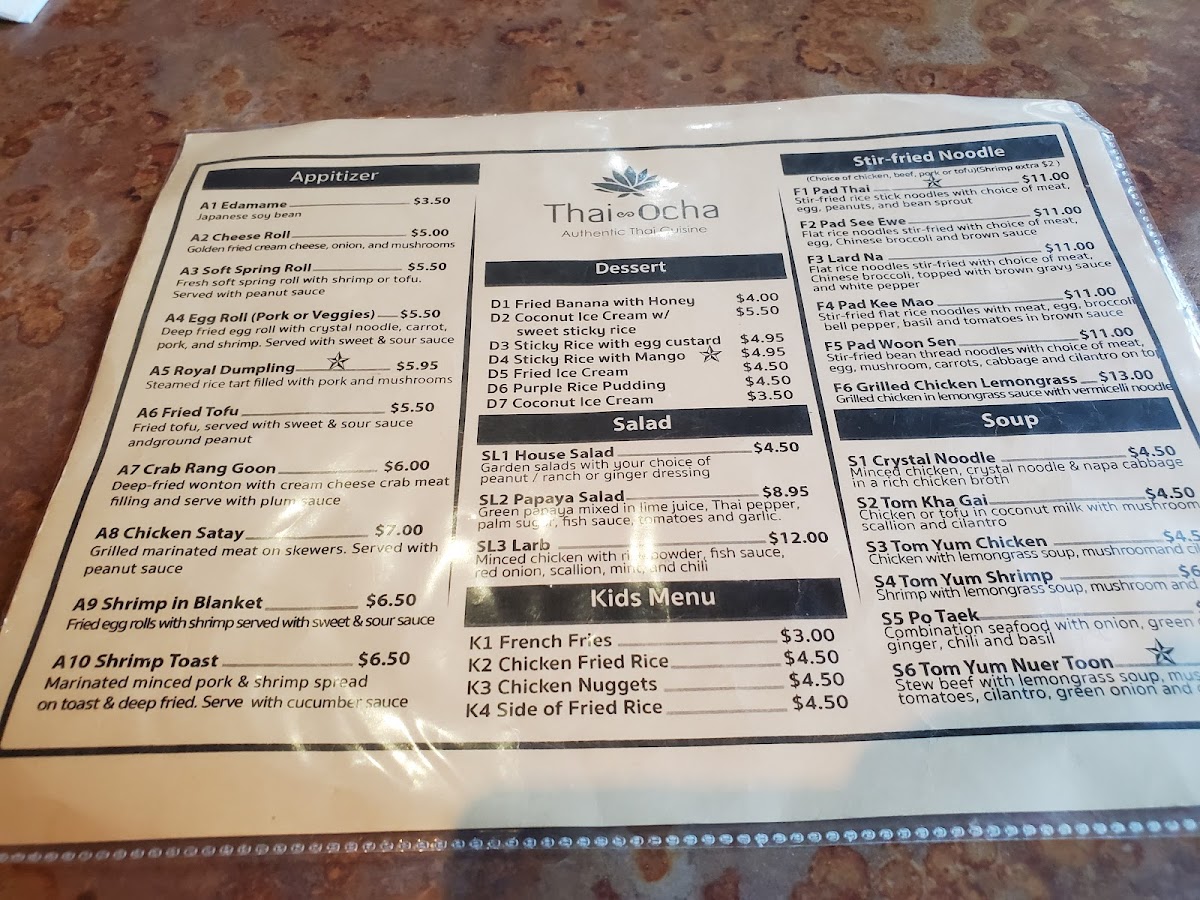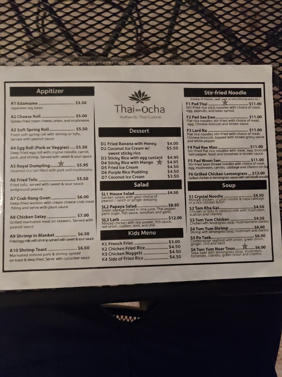 Thai Ocha - TX 78028 Menu